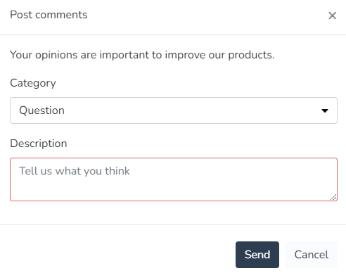 - If an email is entered, the "Send feedback" option will appear, and user submissions will be sent to the email address entered in the help menu.