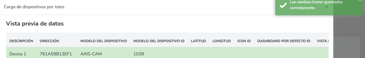 The batch device creation feature allows users to efficiently load multiple devices using a CSV file. This tool is especially useful for large-scale installations, as it avoids manual entry one by one, even allowing you to combine different device models in a single file.