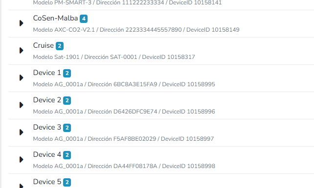 By clicking Save, the new devices are integrated into the general list of the corresponding instance.