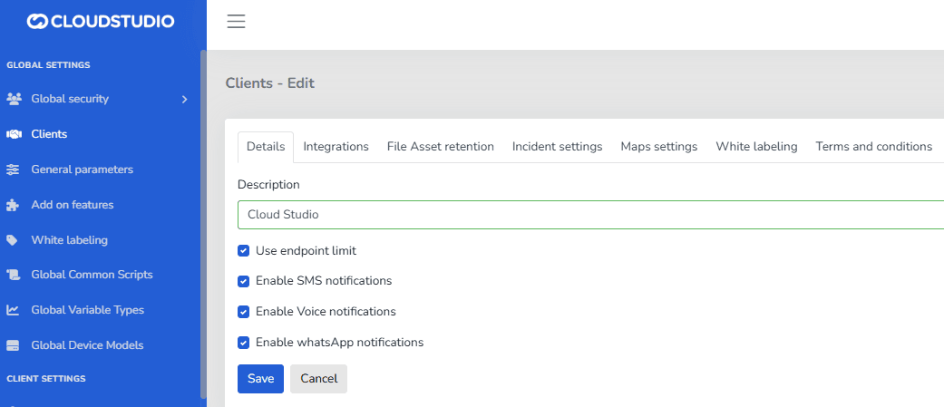 Clients > Enable SMS, Voice, and WhatsApp services