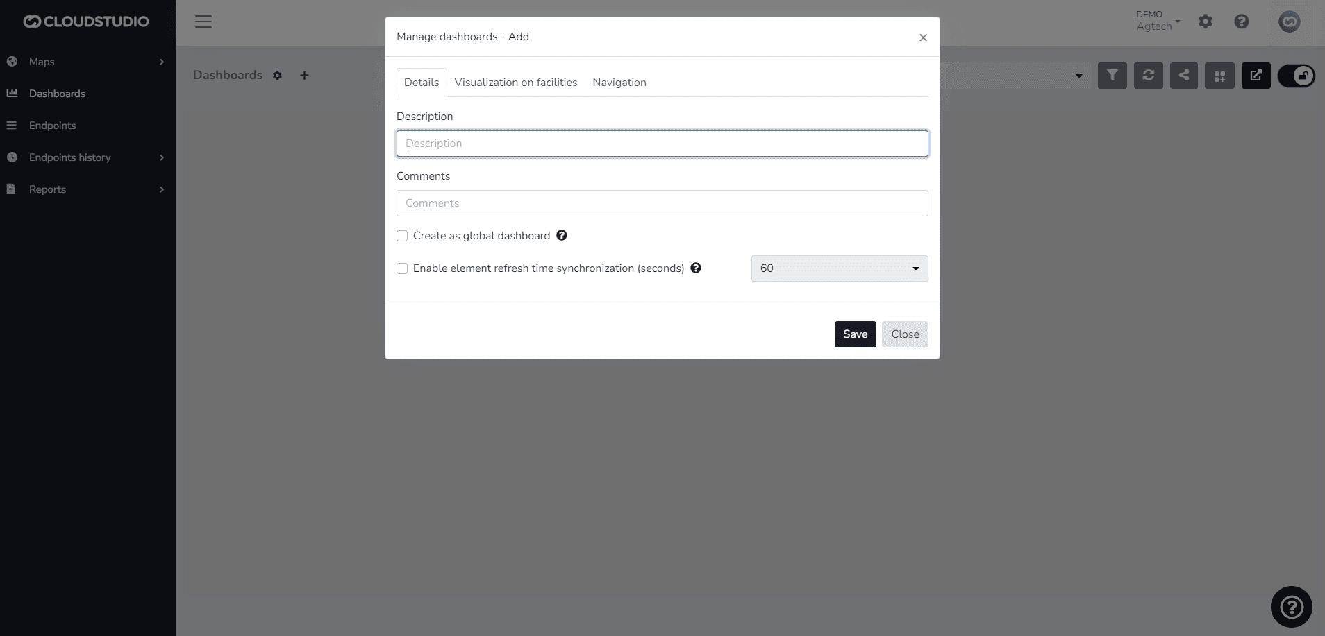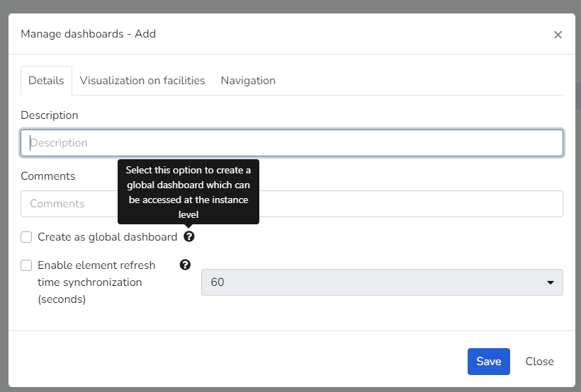 You can also decide whether to create it as Global. If not, the dashboard will only be visible in the Client instance.