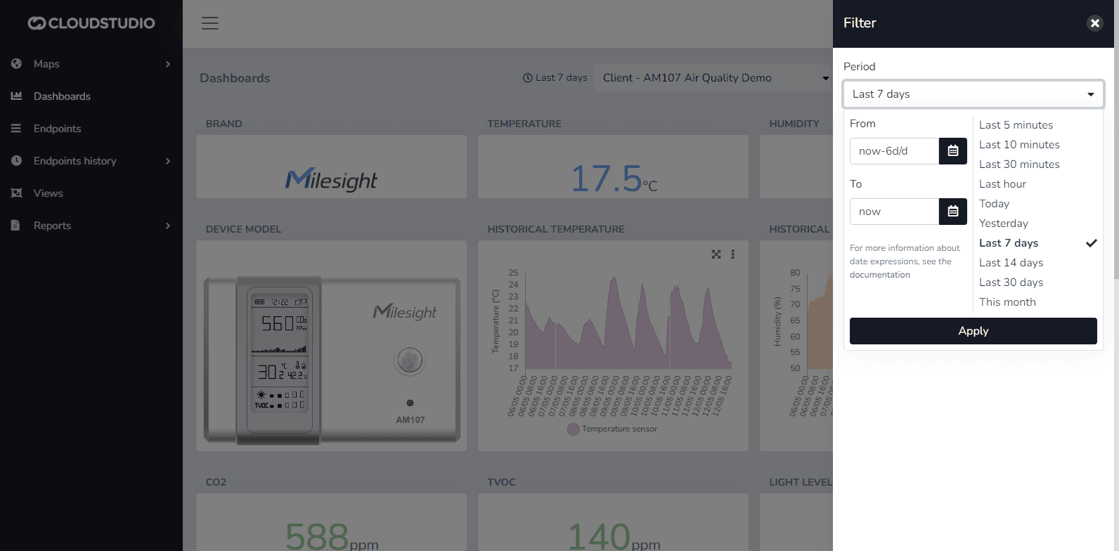 Introduction The platform allows time period selection in various situations, such as: Dashboards Widgets Historical data visualization Reports